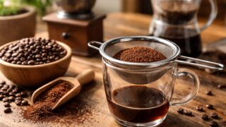 茶こしでコーヒーの微粉をふるうと味はどう変わる?網目の目安、散らさない手順、ミルと抽出の調整、微粉の片付けまで家庭向けに解説。